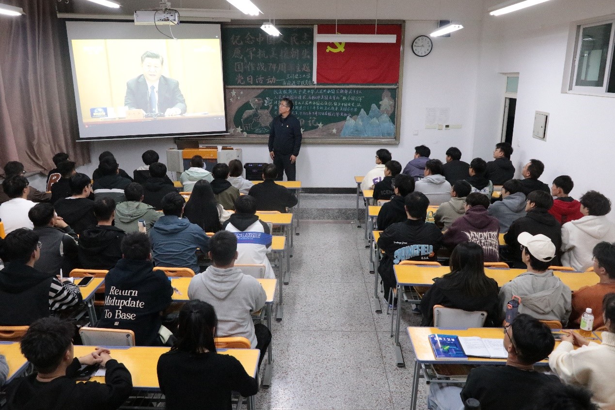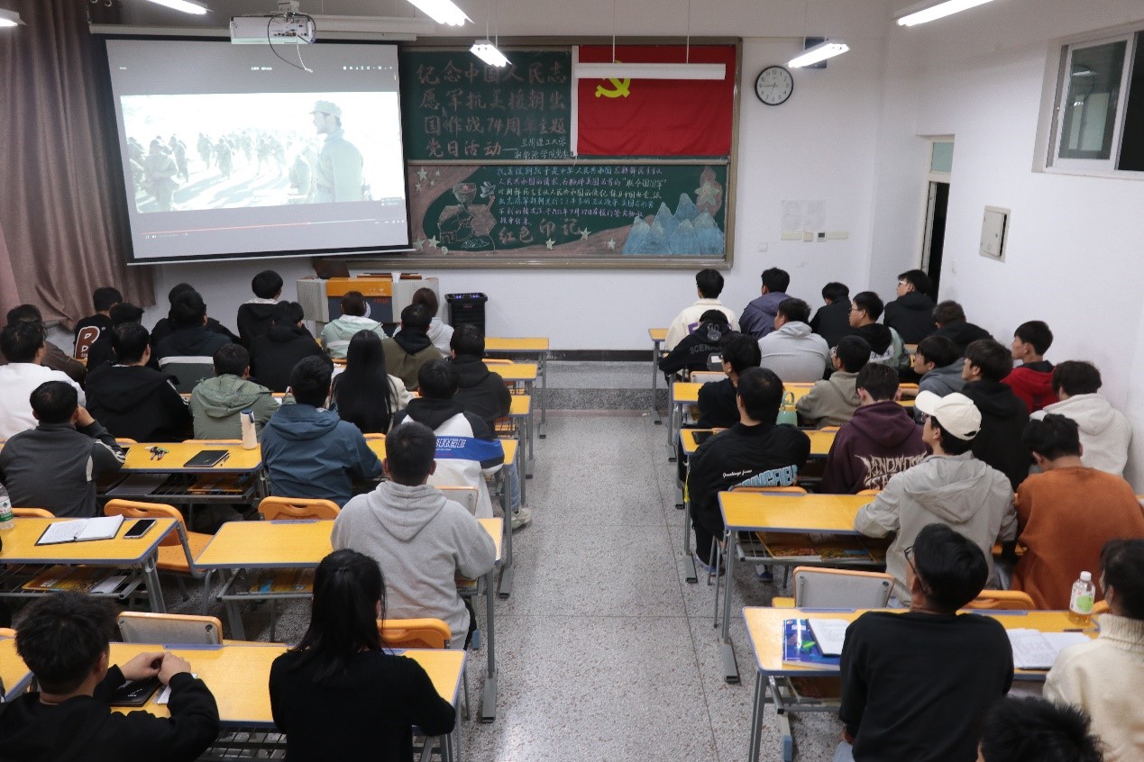活动开始,学院党委书记王胜强带领大家重温了习近平总书记在纪念中国人民志愿军抗美援朝出国作战70周年大会上的讲话。伟大的抗美援朝战争,抵御了帝国主义侵略扩张,捍卫了新中国安全,保卫了中国人民和平生活,稳定了朝鲜半岛局势,维护了亚洲和世界和平。随后,大家一起观看了抗美援朝电影《志愿军:雄兵出击》,穿越时空,以光影为桥,以历史为溯,回望抗美援朝的烽火岁月,致敬“最可爱的人”。电影讲述了新中国如何决策出兵到中国人民志愿军入朝打响第一、二次战役这一阶段的故事,生动展现了志愿军士兵们的顽强意志和不屈精神,表现出中国军人的英雄气概和爱国主义情怀。