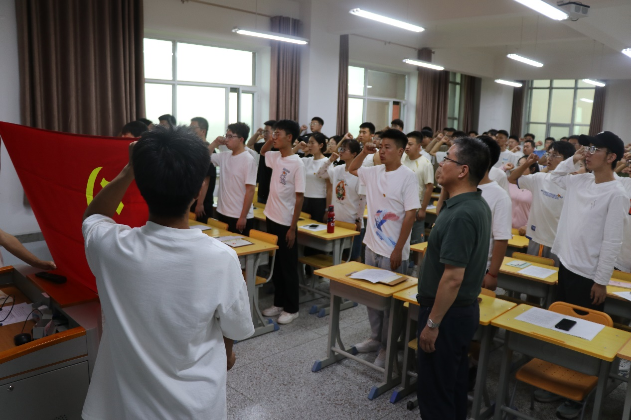 王胜强带领大家回顾了加入党组织的历程,回顾了近两年学习贯彻习近平新时代中国特色社会主义思想主题教育和正在进行的党纪学习教育,指出学生党员对党的理论知识学习、党性锻炼等方面还有不足,入党不是目的而是新的起点,要求同学们参加工作以后,积极参加党的组织生活,高度重视各种学习和锻炼,把党的理论知识和业务技能转化为干事创业的动力,从思想上行动上争做合格党员。