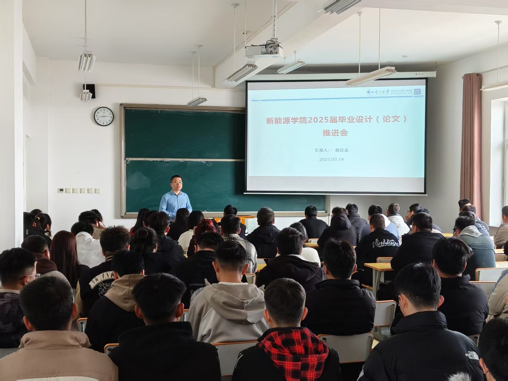 为扎实推进2025届毕业设计工作,规范过程监控,提高毕业设计质量,3月18日上午,新能源学院举行2025届毕业生召开毕业设计(论文)推进会。