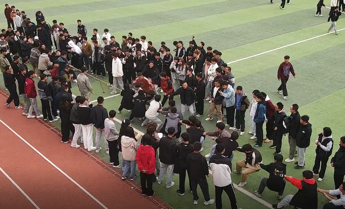 本次运动会设有团体拔河、集体跳绳、协力竞走、同心鼓运动、蛟龙出海、蒙眼大乱斗、迎风飘扬七项团体赛,这些项目包含了对身体协调性、灵活性和团队协作等多重素质的考核。同学们积极参与,展现了顽强拼搏的精神和团结协作的优秀品质及在各项比赛中的密切配合、相互支持,充分体现了团队精神和集体荣誉感。通过积极参与和努力拼搏,大家不仅增强了班级的凝聚力,也展示了我院学子积极向上的风貌,为校园文化的建设增添了生动的一笔。