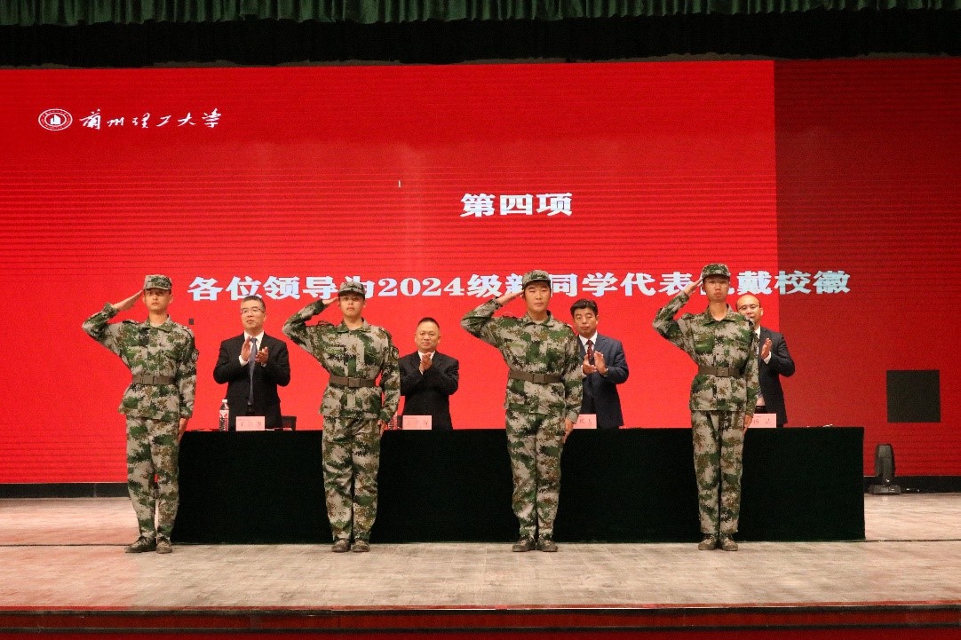 与会领导为新生佩戴校徽