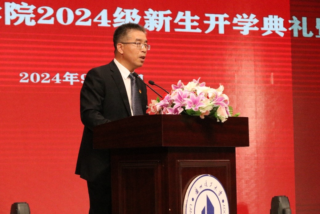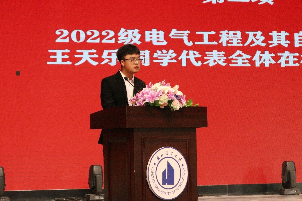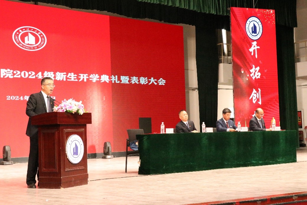 最后,学院院长李琪飞致辞。李院长代表学院全体师生向268名本科新生的到来表示热烈的欢迎,向同学们介绍了兰州理工大学的办学历史、师资力量、专业结构并介绍了新能源学院发展历程和成就。他从理想、学习、创造、勤奋、立德、安全等方面对新同学们提出要求和希望,号召大家秉持“奋进求是”的校训精神,树立远大理想,勤奋努力、厚积薄发,在强国建设和民族复兴伟业征程上挺膺担当、贡献青春力量。