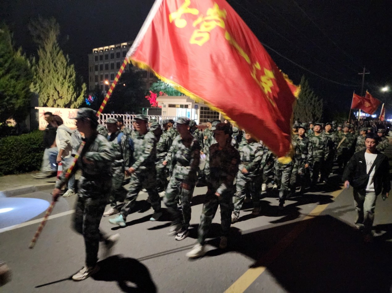 22时,新生连队随着庞大的军训团队,沿着行军拉练路线开始了12公里的夜间拉练和科目训练。拉练途中,同学们阵容整齐、意气风发,一首首歌曲激情唱响,展现出了昂扬的斗志和团结的力量,获得教官和其他学院的师生的好评。教官、辅导员和学生会同学们始终陪伴在同学们身边,服务保障、加油打气。酒泉职业技术学院有关部门统筹组织此次训练,辖区有关部门和方舟救援队派出力量为夜间拉练提供了坚实保障。