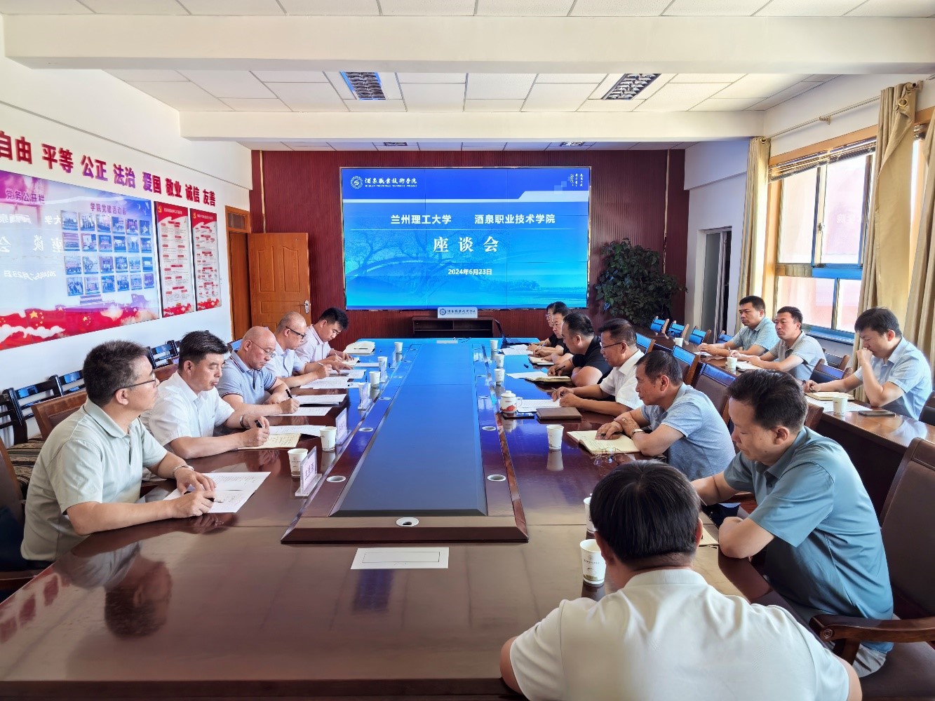 随后,调研组与酒泉职业技术学院进行座谈交流。酒泉职业技术学院副校长王金明介绍了学校办学情况,希望两校在科研合作、教育教学、师资培养等方面深化合作。调研组回应了酒泉职业技术学院相关学院和科研处有关科研工作的需求。