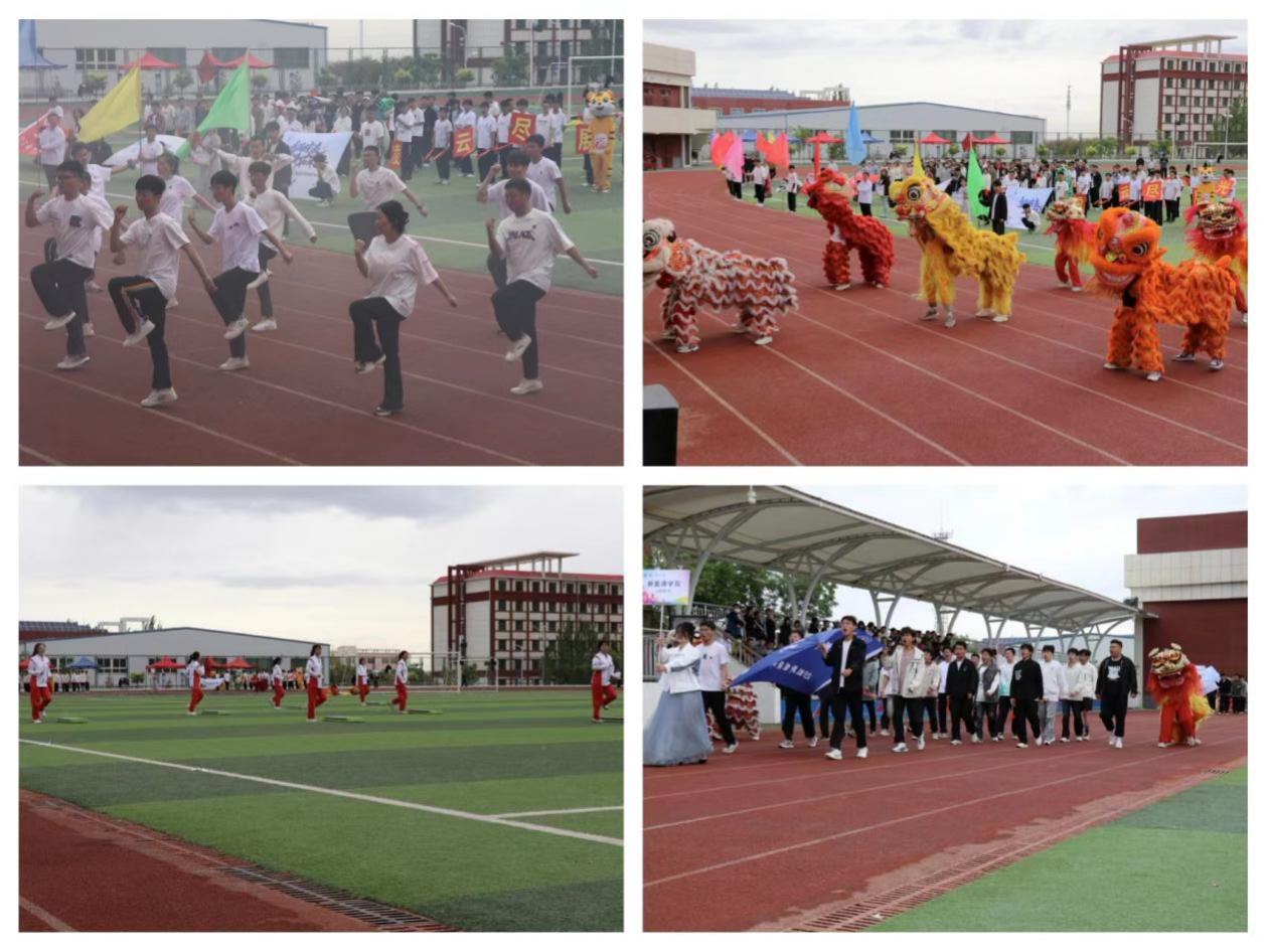 10日早8时许,雨过天晴,举行了隆重的开幕式。学院党委书记王胜强致辞,裁判员、运动员代表先后宣誓,院长李琪飞宣布运动会开幕。伴着激昂的运动员进行曲,入场仪式正式开始。彩旗队、裁判员队伍、学生方阵依次入场。他们精神抖擞、阵容齐整,响亮的口号彰显了青春的活力和班级凝聚力,穿插其中的各种表演则展现了青年学生对成长成才的期许或对体育运动的激情。舞狮队是入场式的亮点,精心编排的精彩表演赢得师生阵阵喝彩。