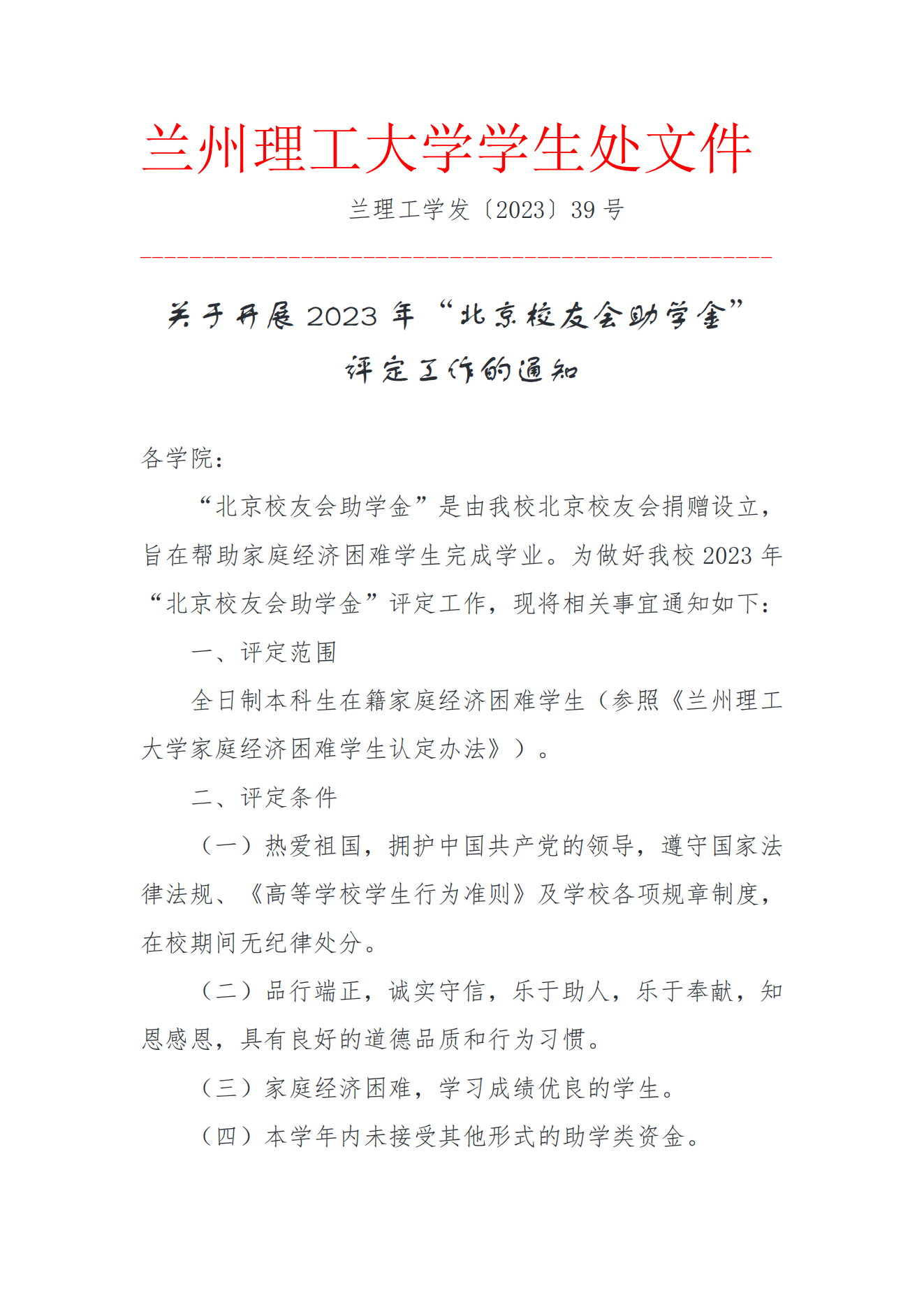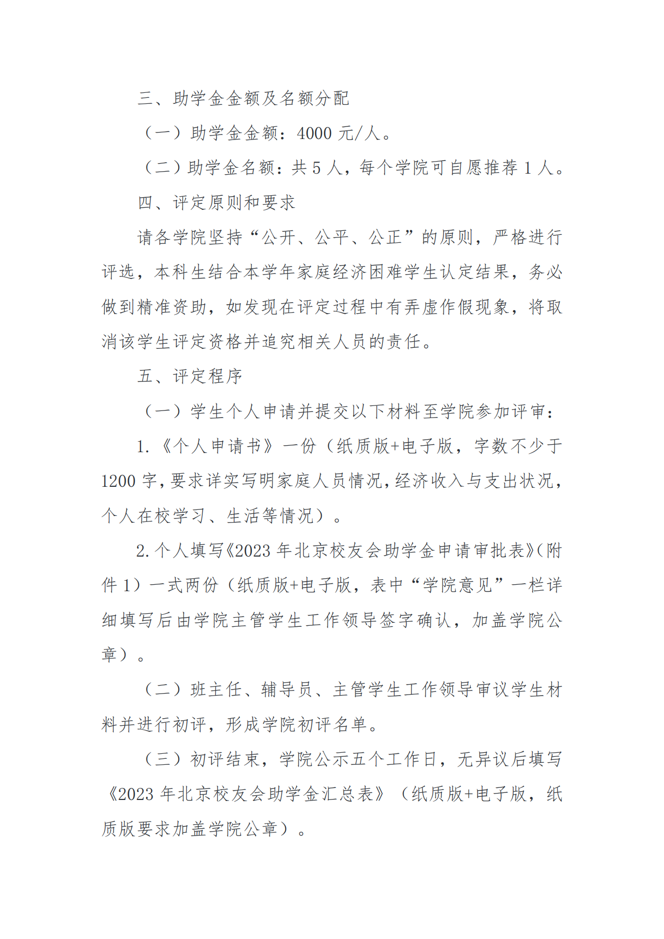 关于开展2023年“北京校友会助学金”评定工作的通知