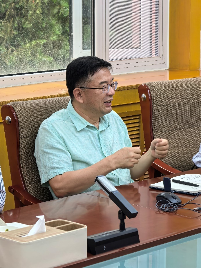 2025年7月19日下午,中科院电工所王志峰研究员应邀到访学校,参加学校有关活动之后,王志峰研究员来到我院进行交流和指导。座谈会在行政楼会议室举行,王老师结合新能源领域发展形势,就我院的学科专业建设、特别是结合区域产业、行业优势和学校学科特色凝练学科方向、科研团队组织、教育教学模式等重要议题做了分析研讨。学院领导班子和在兰的教师参加了座谈会,并就学院定位、改革发展和部分研究工作等众多话题深入交流。